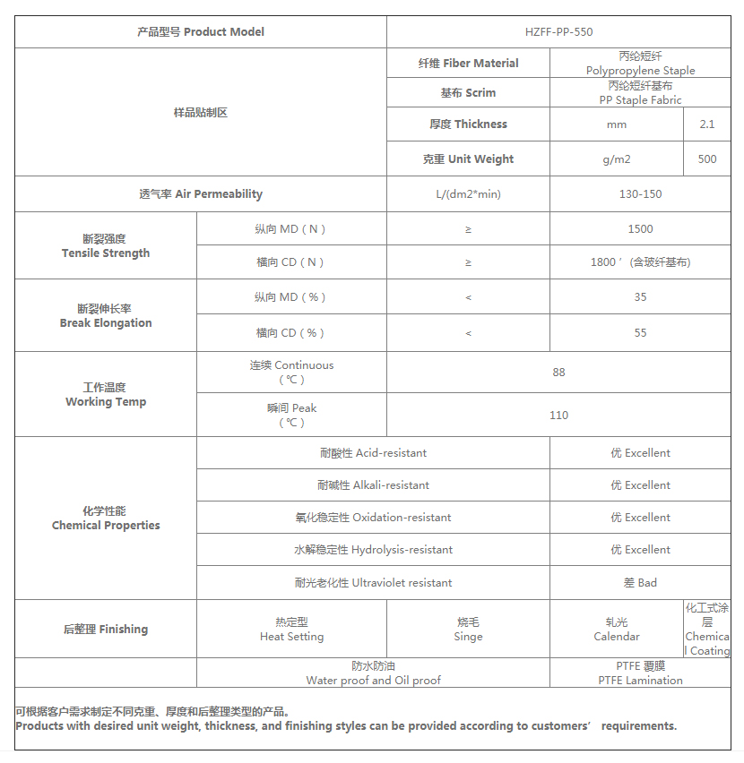 *可根據實際工況條件與其他纖維和基布復合或形成復合過濾材料